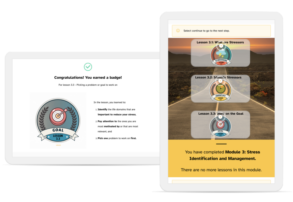 In each lesson of ePST, there are multiple interactive activities, including real-life examples and badges to make learning fun.